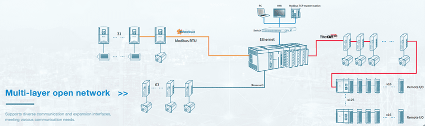 entre a CPU mestre e as Remotas digitais e/ou analógicas. É aplicável a grandes linhas de produção com multi-processo, multi-pontos de controle e rápida requisitos de aplicação de resposta, como enchimento, embalagem, rotulagem, e embalagens, auxiliando na transformação e atualização da automação de linhas de produção e equipamentos.